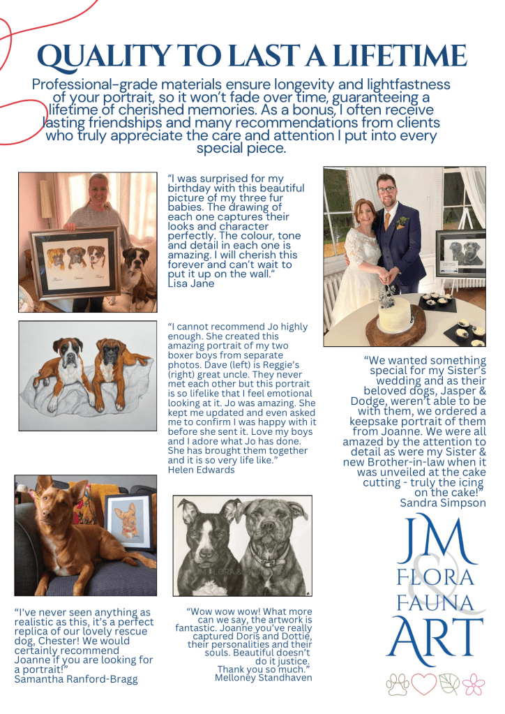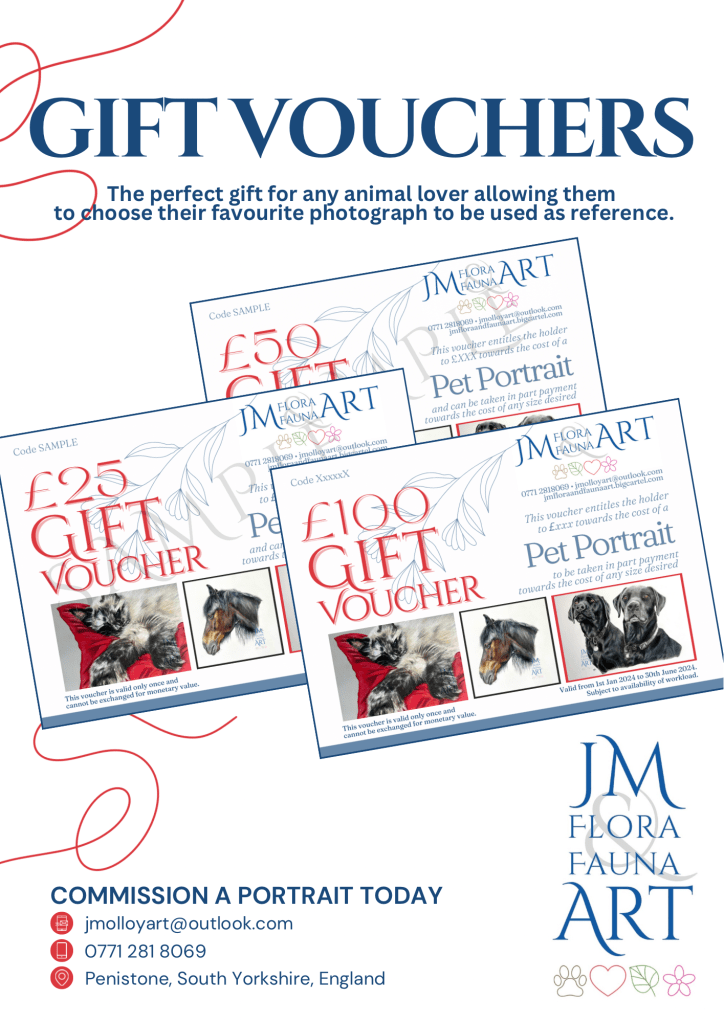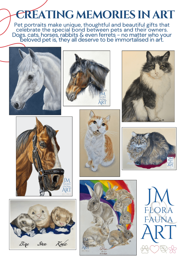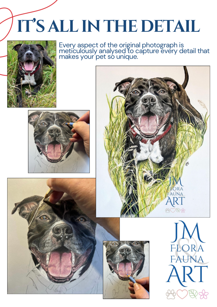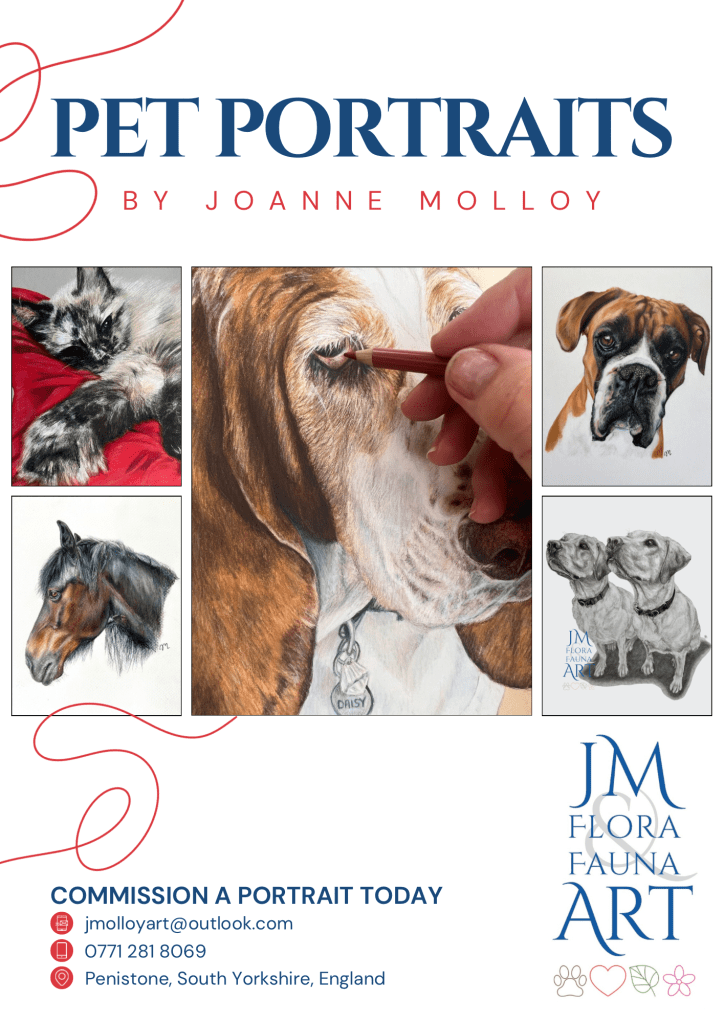 Working from Penistone in South Yorkshire, I create commissioned pet portraits for clients across the UK. Many people discover my work locally and through social media, where they see previous commissions and request their own bespoke artwork.
