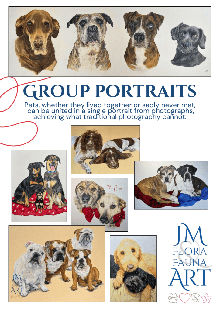 We’ll decide on sizing, orientation, background and any special details and if a group is required from separate photos I will give you examples of possible compositions.